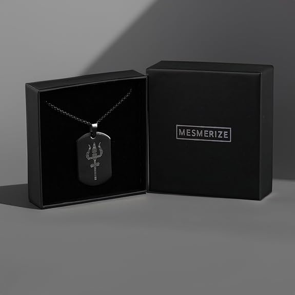 - SACRED SHIV SYMBOL: Mesmerize's Shiv Trishul Tag Necklace is a testament to spiritual power, featuring micro-carved Shiva in Hindi script, radiating divine inspiration.